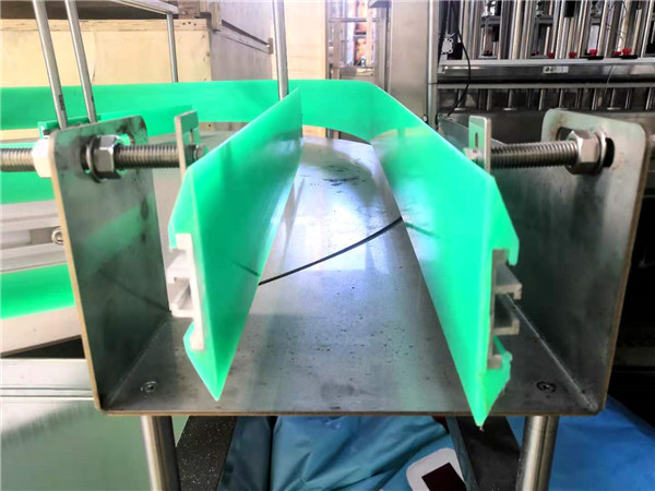 3) De worktable heeft de voordelen van eliminatie van arbeid; verbeter de doeltreffendheid, frequentiecontrole voor roterende beweging, die flessen aan toegang opeenvolgend op transportband maakt.